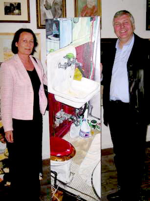 Die Bendicks erinnern sich noch gut an die zehn Tage in der Metropole der USA. Was bedeuten die Mängel der Unterkunft im Vergleich zu den aufregenden Eindrücken in New York? "Abseits der eingetreten Wege", wie Norbert Bendick betont. Maria Landwehr hielt das "New Yorker Badezimmer" malerisch fest und schenkte es Schwester und Schwager als Dankeschön für unvergessliche Tage. "Wir haben alles noch genau vor Augen," erzählen die Bendicks. "Im Bad sah es genauso aus, wie auf diesem Bild. Die Leitungen verliefen über dem Putz. Auf der Toilette hatte man Wasser- und Gasleitung unter dem rechten Fuß, man konnte also wirklich Gas geben," gibt Norbert Bendick lachend Einzelheiten preis. Interessant: dieses Bild gehört zu den Erstlingswerken Maria Landwehrs, die sich heute in Düsseldorf lebend- mittlerweile als Künstlerin einen Namen gemacht hat.
