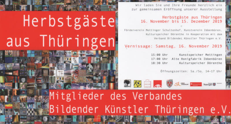 IBBENBÜREN/METTINGEN. Auf symbolisch sehr markante Weise vernetzt sind die hiesigen Kunststandorte Alte Honigfabrik, Kunstspeicher und Kulturspeicher durch die „Funny Red Line“. Praktischer Ausdruck der guten Zusammenarbeit ist seit 2008 das gemeinsame Ausstellungsprojekt „Herbstgäste“. Nach Schwerpunkten der vergangenen Jahre, wie Kunst von Frauen oder Junge Kunst, zeigen die drei Ausstellungen 2019 Werke von Mitgliedern des Verbandes Bildender Künstler Thüringen.