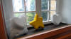 der Doppelfenster, hingen an Wänden, Decken und mit Klammern befestigt an einer