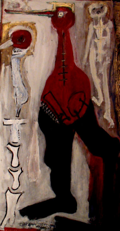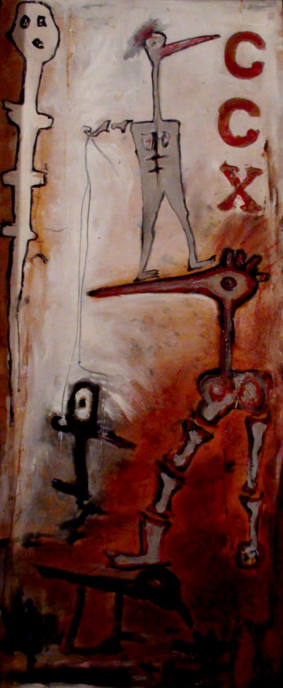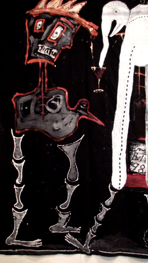Lange-Grumfeld entwirft aus einem schier unendlichen Reich seiner Phantasie Bilder von Dämonen, Fabelwesen, Knochenmenschen oder Tierfiguren, die in ihren Erscheinungen vieldeutig sind , aber auch eine bisweilen verborgene politische Botschaft enthalten.