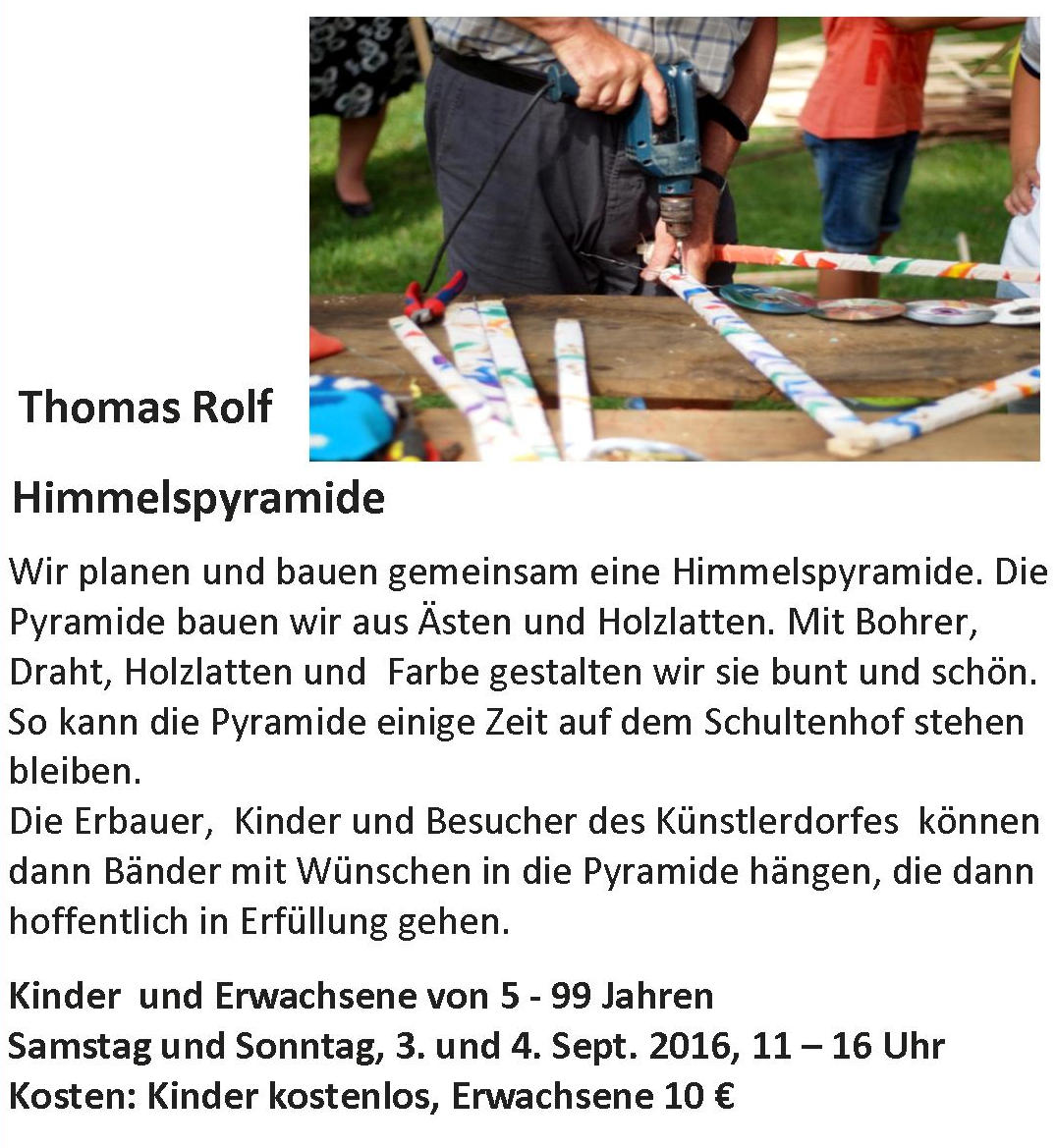 mit seinem Mobile-Bau schon beim letzten Künstlerdorf begeistert. Hämmern, Sägen