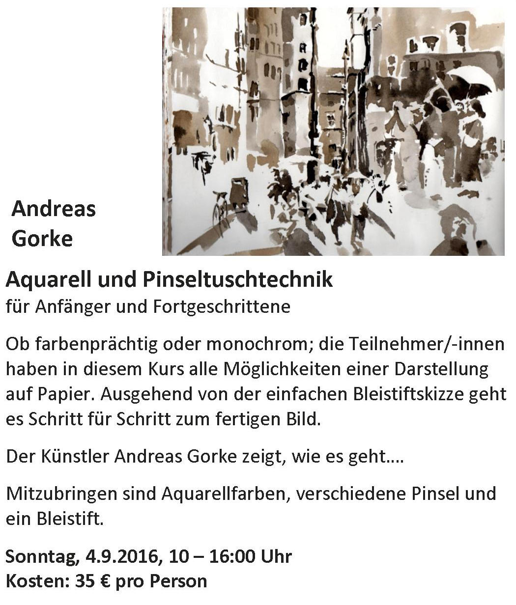 Workshop für Aquarell und Pinseltuschtechnik an.