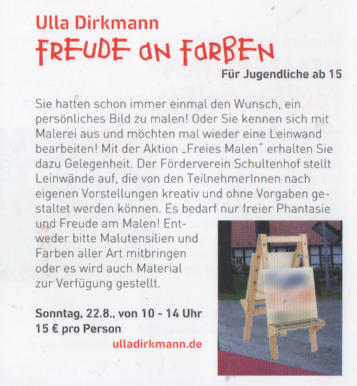 aktuelle Flyer für das KÜNSTLERDORF am 21, und 22. August 2021