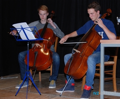 Cellisten Paul Flake und Tobias Langelage (l.) unterhalten mit Folkmusik die