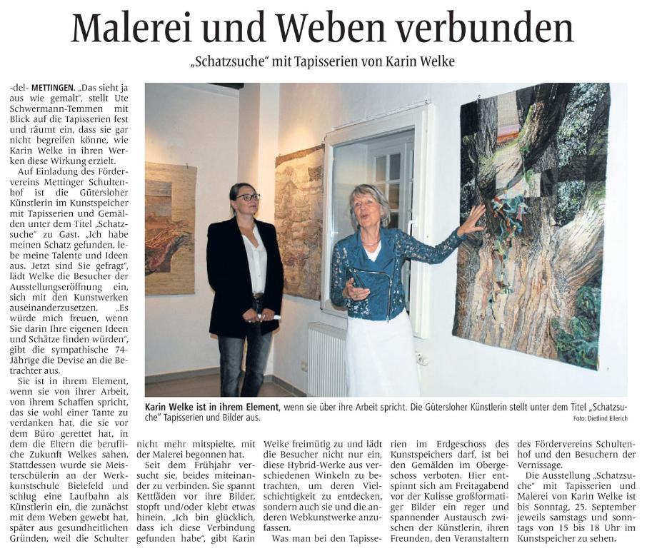 Als ehemalige Meisterschülerin an der Kunsthochschule Bielefeld im Fachbereich Textildesign beherrscht Welke die perfekte Technik der Gestaltung von Webstücken. Ihre großen Bildwebereien lassen die Betrachter staunen und das Meditative der Weberei und die Möglichkeiten, die das handwerkliche Können in ihrer persönlichen Ausdrucksweise bestimmen, beeindrucken zutiefst, heißt es weiter.