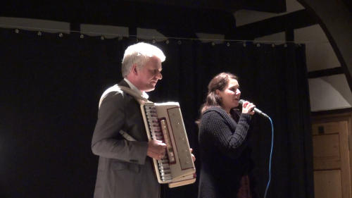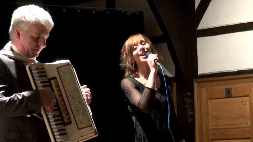 jiddische Volksmusik, begleitet von einem Akkordeon, erleben. Dass man beim